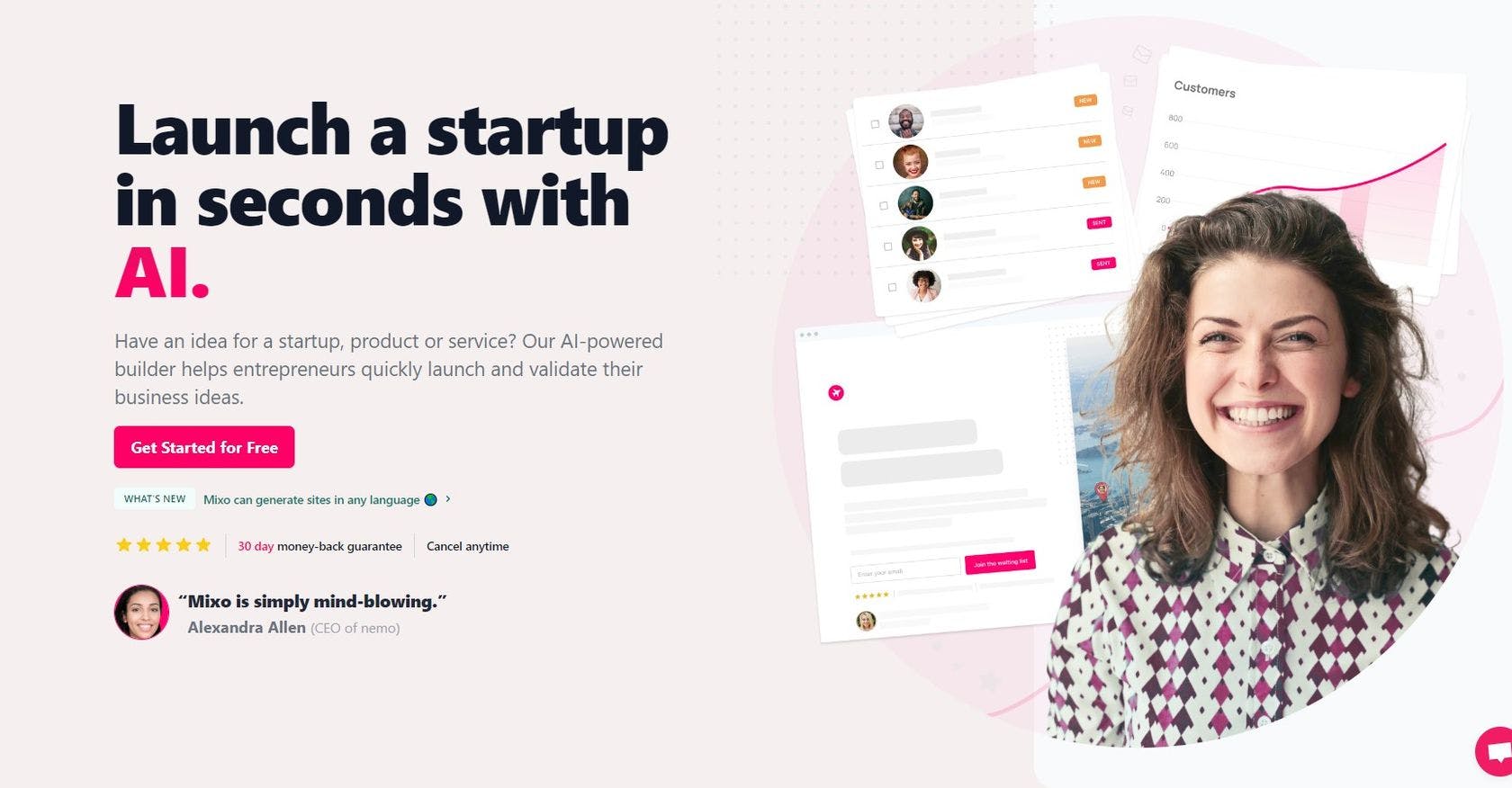 Mixo is a new AI-powered tool that can turn your idea into a startup in seconds. The primary purpose of this solution is to help you create a website and launch it quickly without any coding or design knowledge.